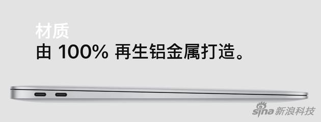 MacBook Air着重强调了一个改变就是它采用100%回收铝材,相比其他苹果在售的设备,MacBook Air达到了最大意义上的机身材料环保。