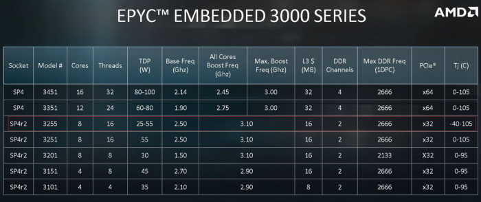 EPYC 3000系列最多16核32线程,对嵌入式市场来说足够强大了。