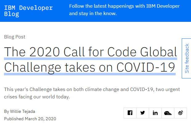 IBM 方面,蓝色巨人正在将其 2020 全球代码征集挑战赛的重点,放在全球气候变化问题之外的疫情防控领域。比如通过开源工具的构建,来应对日益严峻的新冠病毒疫情形势。
