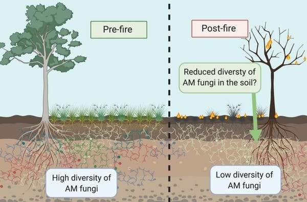 研究表明,生活在土壤表层附近的真菌特别容易着火,当大火掠过时,它们往往会被较高的土壤温度杀死。在地表下的真菌则受到相对较好的保护,并可以提供细胞核用于恢复。