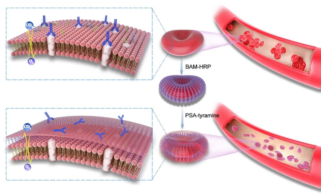 文中提到,唐睿康、王本团队想到了用“易容术”将RhD阳性的红细胞“改造”成RhD阴性的。即通过再造一层细胞膜表面结构,把D抗原的触角掩藏起来。有了这样一层“伪装”,抗体就识别不出抗原了,不会引起免疫反应。
