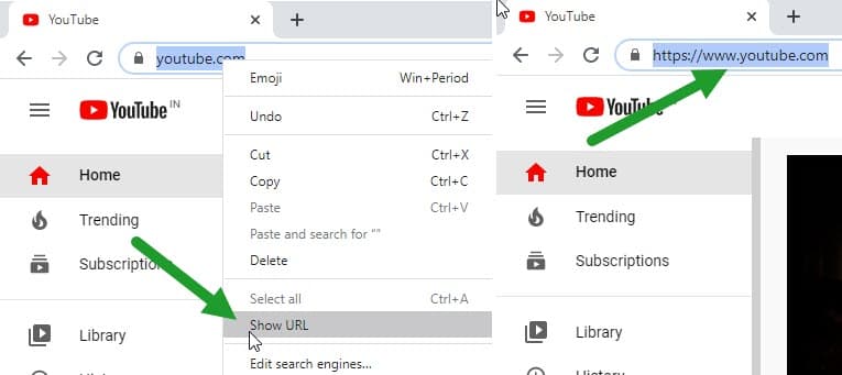 重新启动 Chrome 后,访问任意网站,在 Omnibox 中选择域,然后右键单击并选中 “Show URL” 选项,最后单击网页上的任何其他区域以恢复 URL 的默认状态。