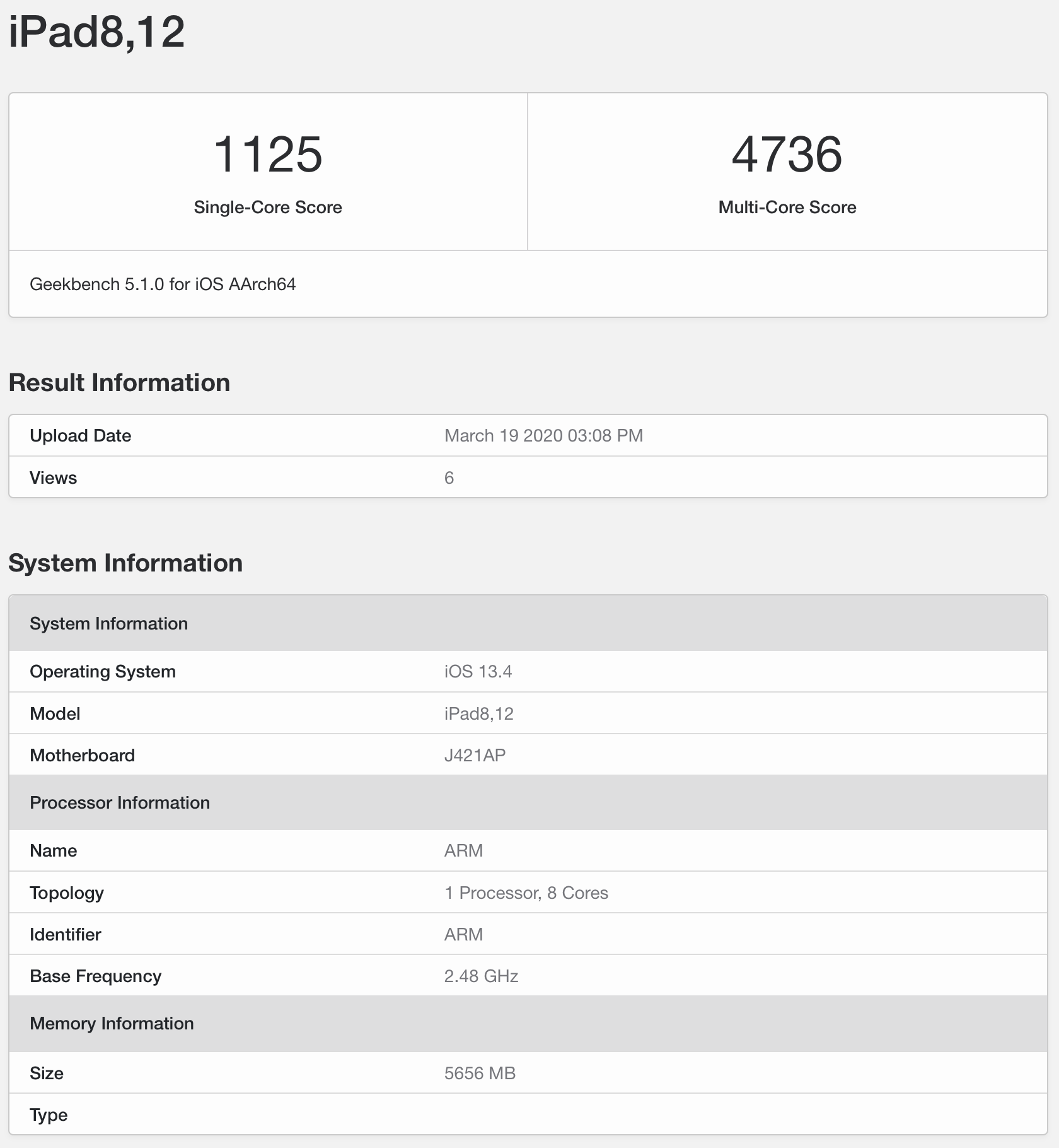 Geekbench 5上已经出现了2020款iPad Pro跑分成绩,其中单核1117分,多核4724分。对比之下,2018款iPad Pro的A12X,单核1113分,多核4608分。