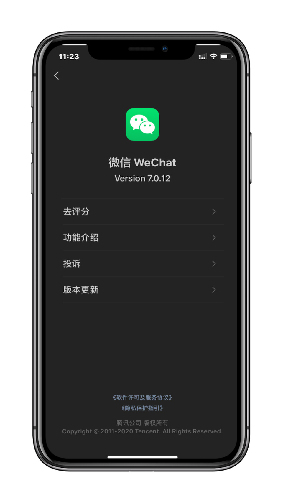 要体验最新的深色模式,你需要确认微信版本号为最新的 7.0.12,设备为已安装 iOS 13 的 iPhone、iPad 或 iPod touch。