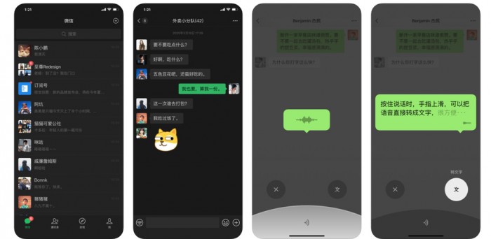 本次更新微信宣称是和苹果进行了合作,带来了系统级别的深色模式,也就是说这一视觉效果是跟随系统层级来进行切换的。目前已知打开深色模式有两个方法: