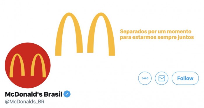 而麦当劳虽然没有明说,却也默默的换掉了自己的头像和背景图,原本的“M”被拆分成了两个单独的“n”:
