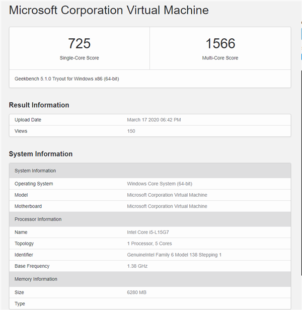 现在,GeekBench 5数据库里又出现了一款“酷睿i5-L15G7”,显然是稍低端一些的型号,检测基准频率为1.38GHz,平均加速2.95GHz,但不确定对应哪种核心。
