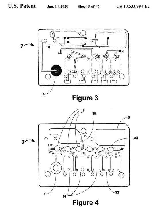 浏览过专利之后,差评君发现,这是一项类似 BioFire 检测设备的血样检测系统,里面提到了怎样对样本里的液体进行分离和控制。