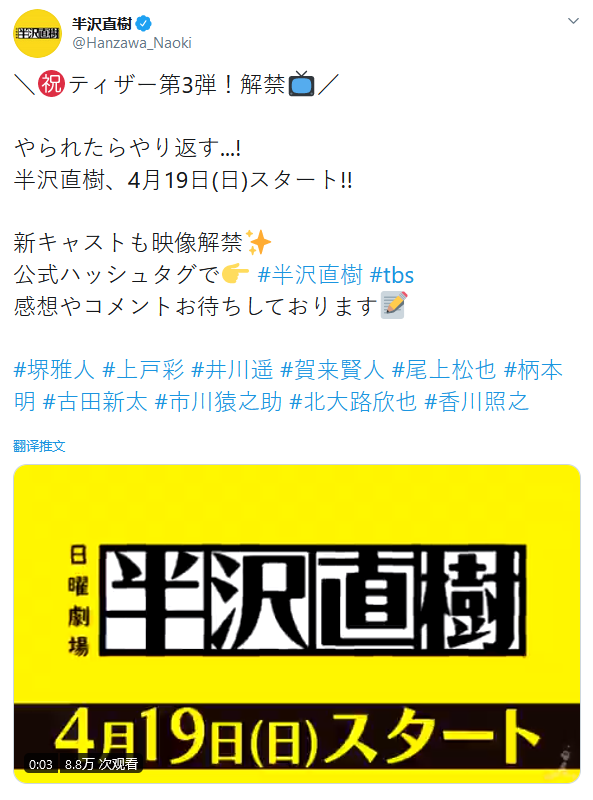 目前,日剧《半泽直树》官方又为大家公开了第二季的一段新PV,在此次PV中,官方正式宣布该剧将于2020年4月19日开播,敬请期待。