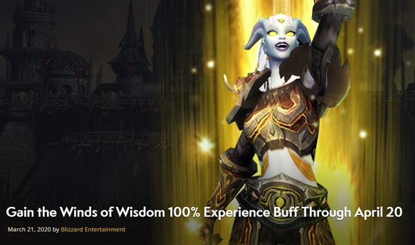 此外,为鼓励玩家宅在家中,暴雪还出台奖励措施:即日起至4月20日,《魔兽世界》玩家可获“Winds of Wisdom”加成,经验值翻倍。
