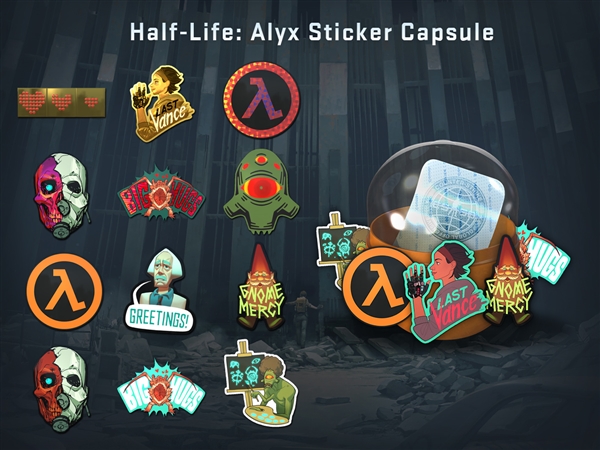 为庆祝《Half-Life:Alyx》即将发布,《CS:GO》增补了一系列与之相关的掉落:凡之前购入Index头戴VR的用户,可获得独家游戏原声以及艾莉克斯徽章一枚:
