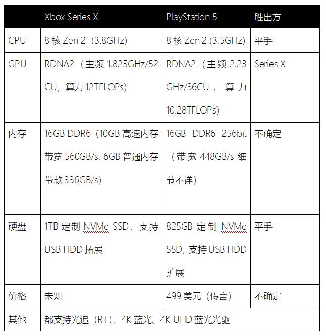 经过数月的宣传片、博客甚至偶尔泄密之后,微软终于在3月16日正式确认了次世代主机Xbox Series X的具体参数,甚至邀请外媒试玩、体验和拆箱;作为主机领域的另一个霸主,索尼也在3月19日公布了新主机PS5的具体参数。从外媒的报道来看,两家公司都给出了数万字的详细参数和技术介绍,但我们不妨简单来看两大主机最关键的技术对比: