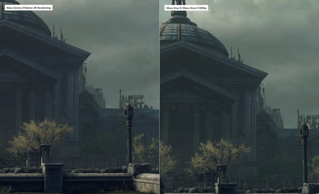 Series X原生4K渲染(左)与Xbox One S 1080p对比图