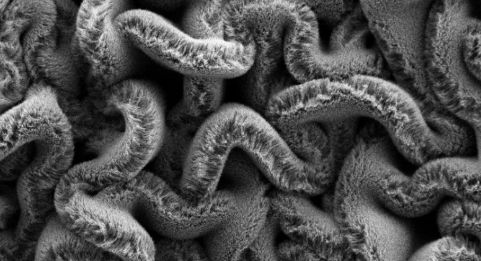 将其金色朝下放置在一个弹性基材上,该基材在张力下可拉伸至其正常长度的四倍。一旦打开,张力就释放了,整个东西皱了起来,以更高的密度将“森林”中的纳米管“树”挤在一起。最后,纳米管“森林”充满了凝胶电解质,能够在纳米管表面捕获电子。在这一点上,把两个电极夹在一起,施加一个电压,把所有的电子从一边传送到另一边,在那里电子可以储存起来,然后作为能量释放出来。