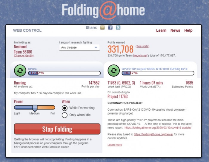 显然,冠状病毒本身并没有什么好处。但是它显著提升了Folding@Home项目的支持度。该项目正在寻找治疗阿尔茨海默氏病,癌症和COVID-19等疾病的方法。冠状病毒疫情爆发,让全球更多的电脑用户加入Folding@Home项目,共享自己的空闲的计算能力。