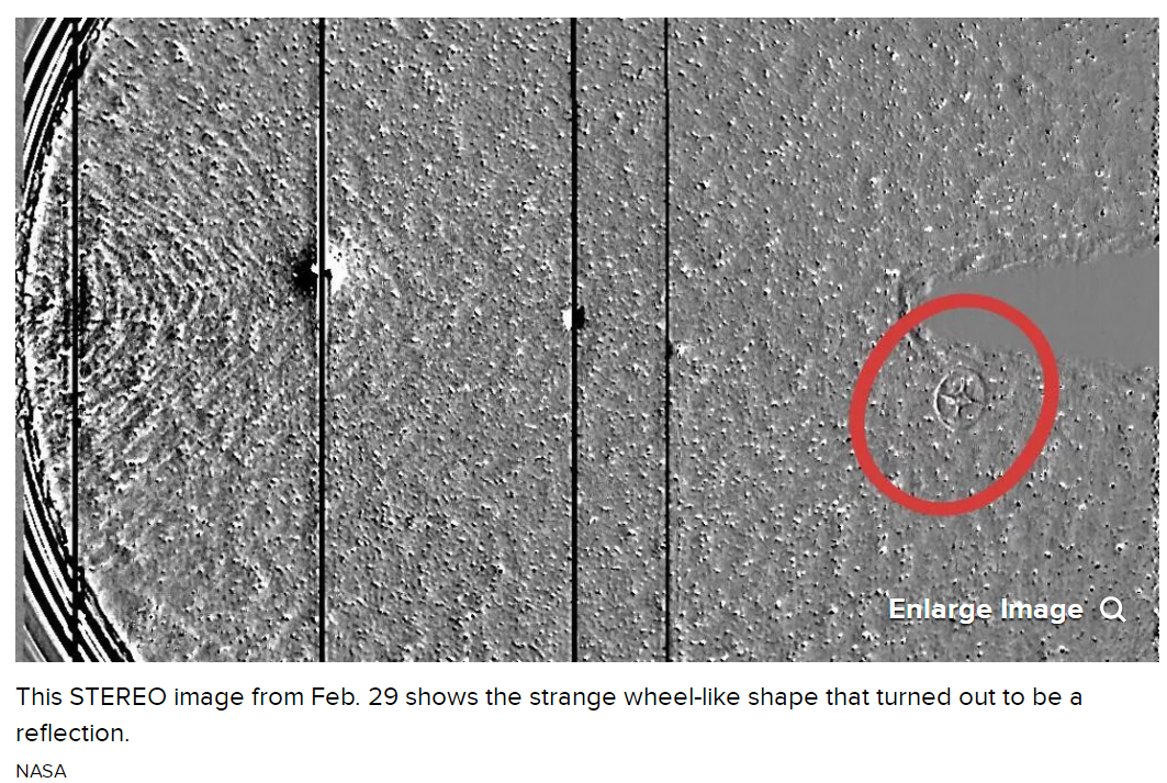 据外媒CNET报道称,NASA(美国宇航局)近日解释了太空图像中的“不行飞行物(UFO)”其实是由行星内部反射引起的图像。UFO迷们最近对NASA“立体声”任务拍摄的图像中出现的奇怪形状感到兴奋。据悉,立体声任务是指太阳陆地关系天文台的缩写,于2006年作为双空间天文台发射升空,其任务是研究太阳和日冕物质的喷射。