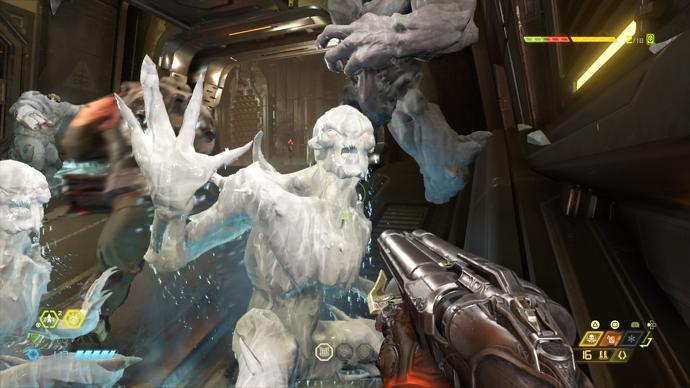 2016年的作品是非常成功的经典重现,但它也改变了《毁灭战士》在剧情方面的做法,增加了过场动画、音频日记和中场任务对话,与id工作室原作当中的决策形成了明显反差。《永恒》在剧情方面做了更多,拓展了阵容并对增加了对资源的重视。