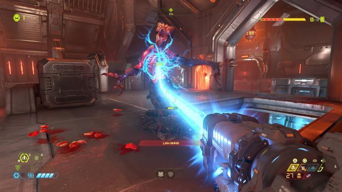 2016年完成的重制作品已经非常出色,它的枪战不时被暗黑的地狱怪兽的特写镜头打断,它的重金属音乐总是越来越强。《永恒》则更进一步,允许你在固定垂直轴的新竞技场中猛冲和翻滚,血腥的场景可以满足你的想象力。