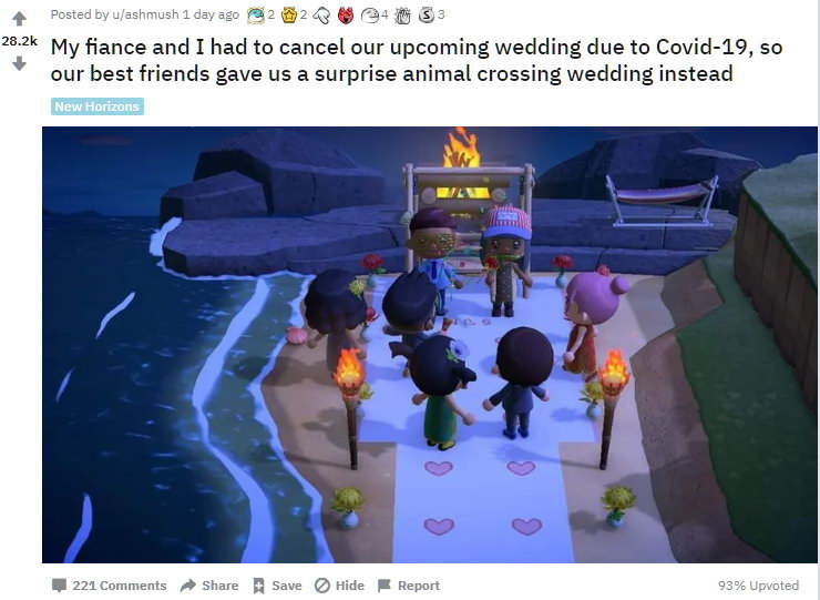 全球疫情日益严重,许多大型活动都被取消了。国外女玩家ashmush的现实婚礼也被迫取消,但她和未婚夫在《集合啦!动物森友会》里举办了婚礼,场面非常温馨。