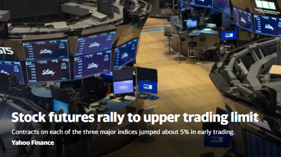 全球金融市场继续上演疯狂行情,欧美股市报复性反攻,美股期货全部涨停;美元遭遇抛售。美国三大股指期货均涨超5%,标普500指数期货涨2333.5点,触及交易限制;道指期货涨至19427点,触及交易限制;纳指期货涨5.39%,报376.62点。