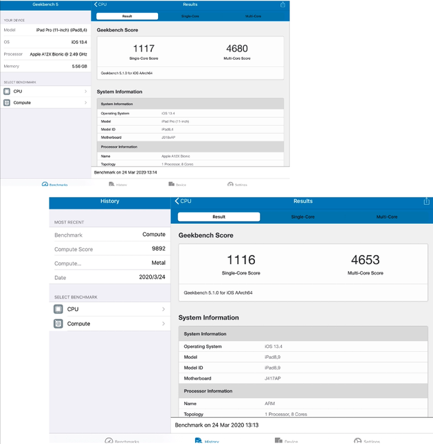 两代iPad Pro的CPU跑分,基本是一样的,下图为新iPad Pro