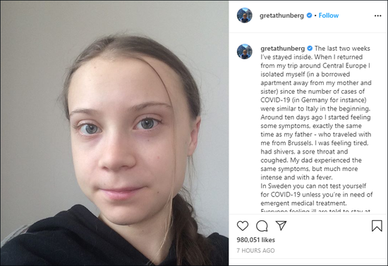 瑞典环保少女通贝里(Greta Thunberg)于当地时间24日深夜表示,她“极有可能”在最近去欧洲的一次短途旅行中感染了新冠肺炎,陪同她一同前往的父亲也疑似“中招”。但由于瑞典已不再检测轻症和疑似感染患者,通贝里只能选择自我隔离。目前她“基本恢复”。