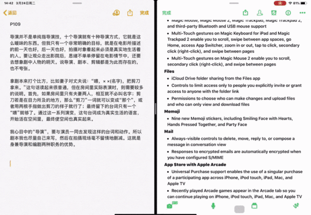 作为 iPadOS 13.4 最大的新特性,触控板/鼠标的支持将为 iPad 的生产力属性增添更强的说服力。虽然 iPadOS 13 已经加入了对鼠标的支持,但苹果在 iPadOS 13.4 中完成了更多适配工作,使得鼠标操作与触屏操作能够更完美地融合。