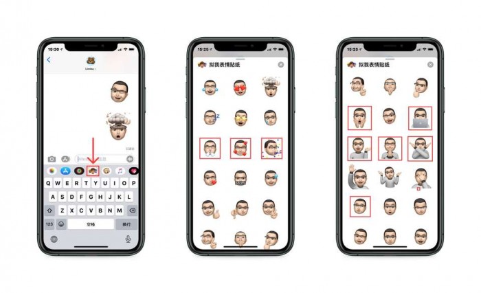 iOS/iPadOS 13.4 新增了九枚拟我表情贴纸,在搭载 FaceID 功能的机型上,进入信息应用,并在输入栏中选择相应功能即可使用。(Tips:长按发送按键还可选择信息特效噢)