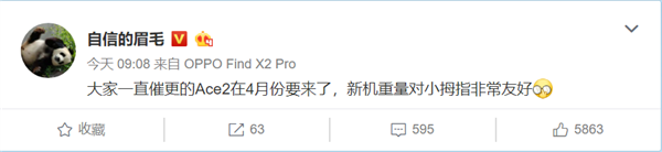 3月25日消息,OPPO副总裁沈义人为新机预热。沈义人透露,OPPO Reno Ace 2将于4月份发布,新机重量对小拇指非常友好,暗示Reno Ace 2的重量控制会比较理想。进入5G时代,手机对散热、续航有了更高的要求。