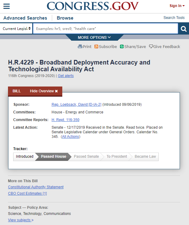 《宽带数据法案》则有网改变 FCC 采集宽带可访问性信息的方式,以确保联邦政府准确知悉何处可用宽带、以及哪些地区有所欠缺。