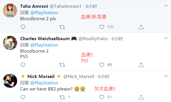 不少玩家将《血源》奉为宫崎英高的最佳杰作,并在近年来一直渴望能够听到《血源诅咒2》的消息,这点也在Playstation官方推特的评论区中得到了完美的体现,玩家纷纷要求索尼携手FS社趁着PS5的发售推出《血源诅咒2》,并且希望能够看到一个60帧以上的凄美血源世界。甚至不乏玩家表示只要索尼肯推出《血源》续作,就去首发入手PS5的。