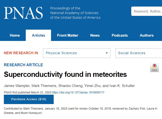 据著名的化学和生物化学教授蒂门斯称,在极端条件下形成的陨石是观察外来化学物种的理想选择,例如超导体,它是导电或无阻传输电子的材料。超导材料很独特,并存在于这些地外小行星上。