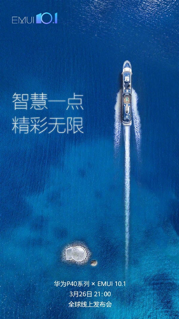 3月25日消息,华为EMUI官方微博预告,P40系列将预装全新的EMUI 10.1系统。海报显示,EMUI 10.1的slogan是“智慧一点,精彩无限”,暗示智能连接是EMUI 10.1的一大看点。 在EMUI 10上,华为就已实现全场景智慧连接。智慧屏、手机、笔记本等设备科实现无缝连接。