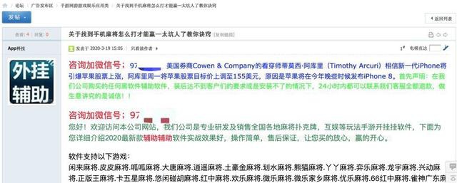 外挂软件的帖子,画风一般是这样的,同样,这些内容也有法律风险。