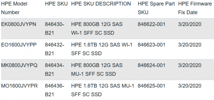 此外,HPE表示这些SAS硬盘出现的bug也不是他们独有的,这些SSD硬盘不是HPE设计制造的,真正的制造商已经通知了HPE,理论上使用这家OEM公司的其他客户的SSD也会出现4000小时掉盘的问题。