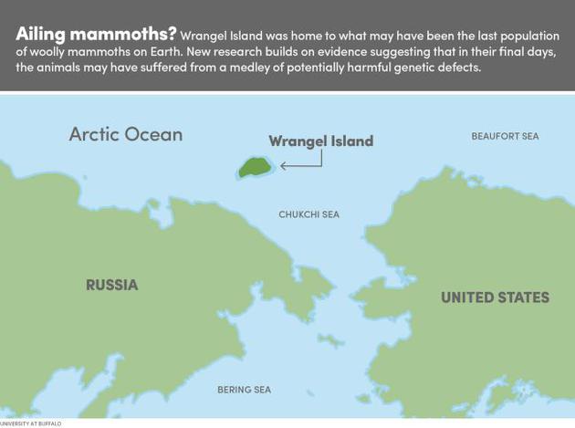 弗兰格尔岛非常怪异,绝大多数猛犸在大约10500年前冰河时代末期灭绝消失,但由于海平面升高,一群猛犸被困在弗兰格尔岛,并一直在此生活下来,直到大约3700年前才最终消亡。该猛犸群体非常孤立,数量很少,没有太多的遗传多样性。