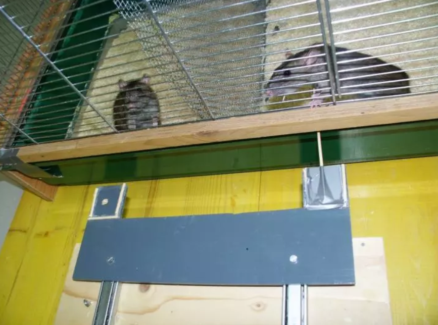 科学家将饥饿或饱食的挪威老鼠放在一个房间里,然后将空气从它的笼子里引到另一房间的笼子里。另一个笼子被金属丝网屏障一分为二,并包含另外两只挪威鼠-每只鼠位于该屏障的两侧。其中一只老鼠可以接近食物的外部托盘,如果需要,可以将其拉到同伴够到的距离内。