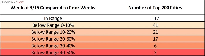 随着疫情封城和居家隔离措施的普遍实施,美国多地出现了较为明显的互联网降速。宽带分析网站 BroadbandNow 的 Top200 城市调查显示:过去一周内,有 88 个城市的互联网速度出现了下降,甚至有 3 个城市的降幅超过了 40% 。显然,随着越来越多人在家中学习、办公、游戏、娱乐,运营商正面临着严峻的带宽压力。