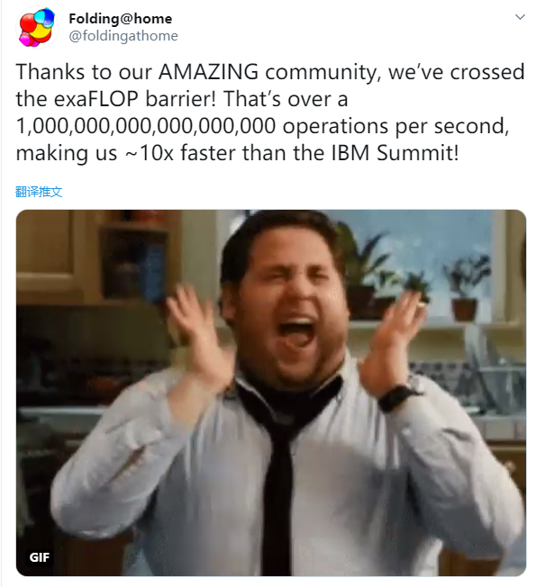 Folding@home现在官方宣布,项目算力已经突破100亿亿次大关(1后边跟着18个0)!