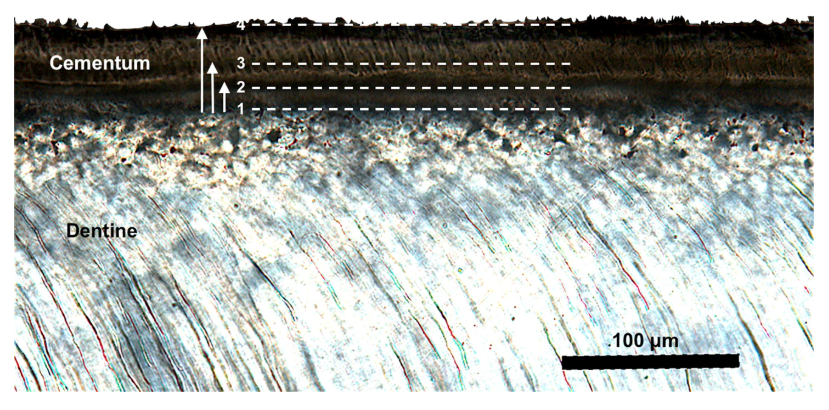 牙齿的大部分一旦断掉就不会长出,但根部周围的组织却会增长。这种东西被称为牙骨质,通常会在牙齿表面之后添加新的层。在这项研究中,研究人员调查了以下假设:重大生理事件将在这些层次上留下自己的印记。