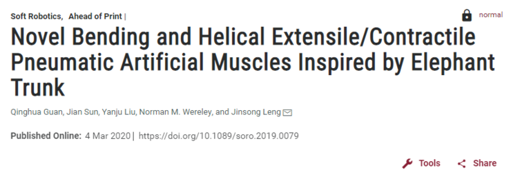 随着柔性机器人的迅速发展,人们越来越意识到,冰冷、僵硬只是我们对机器人的刻板印象。近日,国际著名期刊 Soft Robotics 刊登了哈尔滨工业大学冷劲松教授团队与美国马里兰大学 Norman M. Wereley 教授团队的共同研究成果,题为 Novel Bending and Helical Extensile/Contractile Pneumatic Artificial Muscles Inspired by Elephant Trunk(受象鼻启发的新型弯曲螺旋可伸展/收缩气动人工肌肉)。