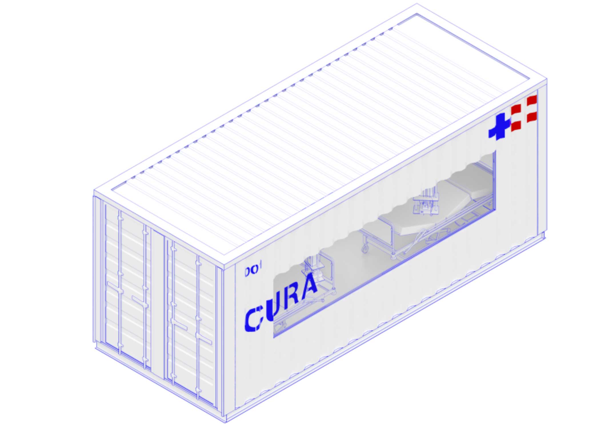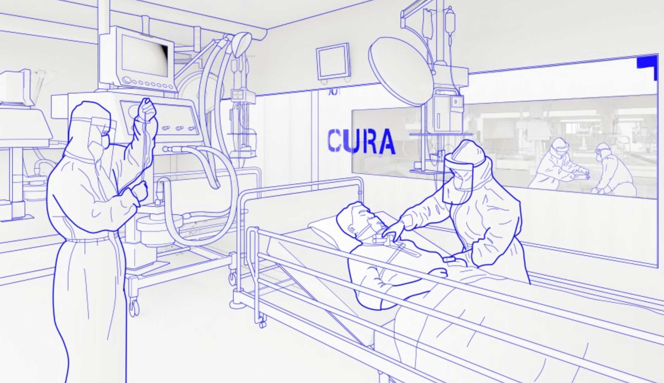 CURA由包括Carlo Ratti Associati,Italo Rota,Studio FM Milano,Humanitas Research Hospital,Jacobs,Squint / opera等在内的团队开发。它是开源的,由20英尺(6.1 m)长的标准运输集装箱制造,经过非常仔细和彻底清洁,增加了窗户,入口进行修改,然后连接到较大的充气结构上,以根据需要创建具有不同大小的模块化配置,从4张床到40多个床。