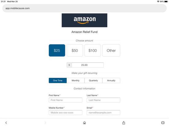 那么这个帮助外包司机的基金骂点在哪儿?亚马逊自己为这个基金捐出了2500万美元,还开放了公众捐助渠道。这个基金网站上就有捐助按钮,接受公众每月定期或者一次性的捐款,信用卡借记卡Paypal都可以,25美元起捐。而且,基金网站明明白白写着“这个基金将主要依靠个人捐款以及亚马逊的资助”。