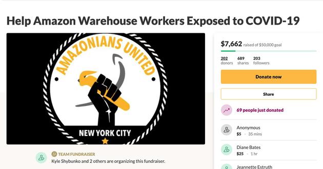 然而,亚马逊纽约皇后区仓储物流员工三天前却自发在众筹网站GoFundMe发起了一个众筹项目,呼吁公众捐款帮助他们应对新冠疫情。他们透露,有名员工因为病毒检测阳性必须隔离,但亚马逊却以他无法工作为由拒绝支付薪酬。这个众筹项目是员工自发的,和亚马逊并没有关系,三天时间筹集了7662美元。