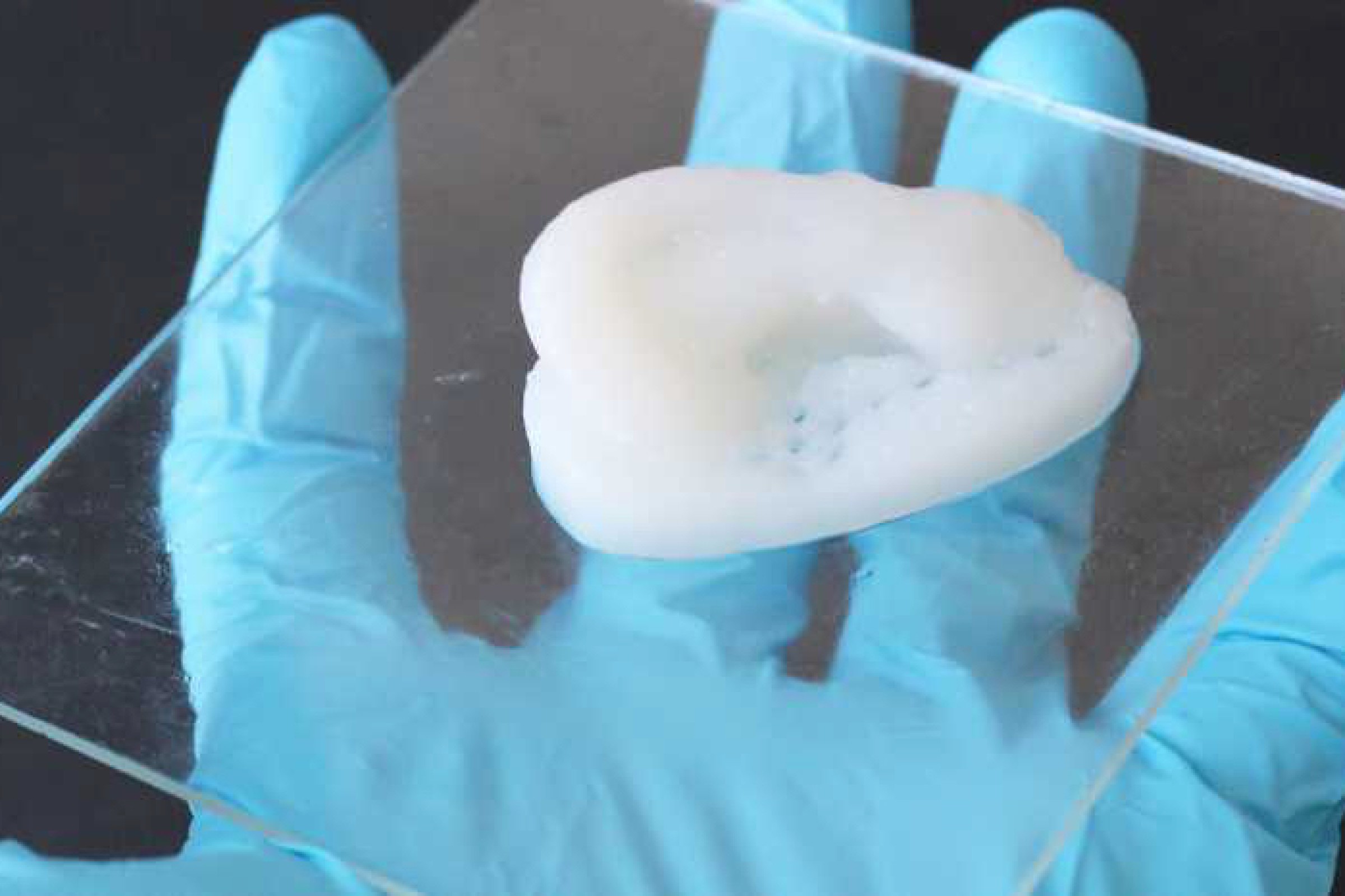 首先,研究人员用水和6-14%的纤维素颗粒和纤维制成了一种“打印墨水”。这些纳米级的纤维素颗粒悬浮在水上,这使得墨水能够拥有凝胶般的粘稠度。然后利用一种被叫做“直接墨水书写”的工艺让材料从一个打印机喷嘴逐层喷出并形成一个三维物体。