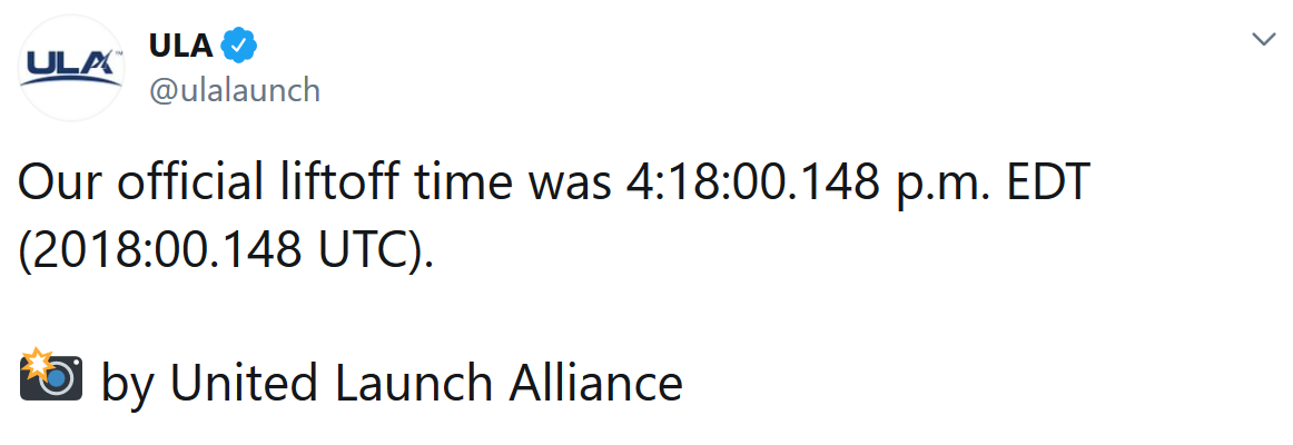 据了解,此次发射比原计划时间晚了大约5个小时,ULA不会播出这段视频。