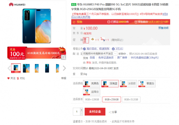 以华为京东旗舰店为例,目前P40 Pro分别已经超过2万台。由于需要支付订金100元,所以这个数据的含金量显然要比“意向”预订要高得多。