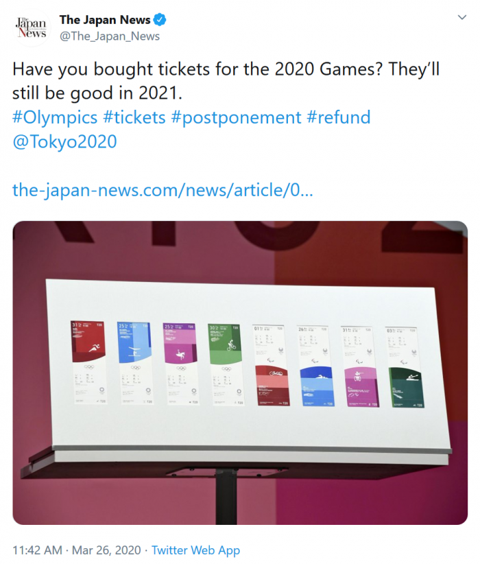 而此前,有消息称,若东京奥运会和残奥会因新冠疫情被取消,根据规定将不对已售出门票予以退票。这也让已经购买票的观众大为不满,因为东京奥运会的门票价格不菲。