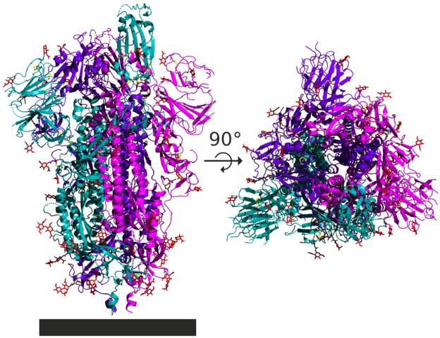根据美国得克萨斯大学奥斯汀分校研究团队的最新解析结果,新冠病毒 S 蛋白以三聚体形态存在,每一个单体中约有 1300 多个氨基酸,其中 300 多个氨基酸构成了 “受体结合结构域”,即 S 蛋白与 ACE2 相联结的地方。