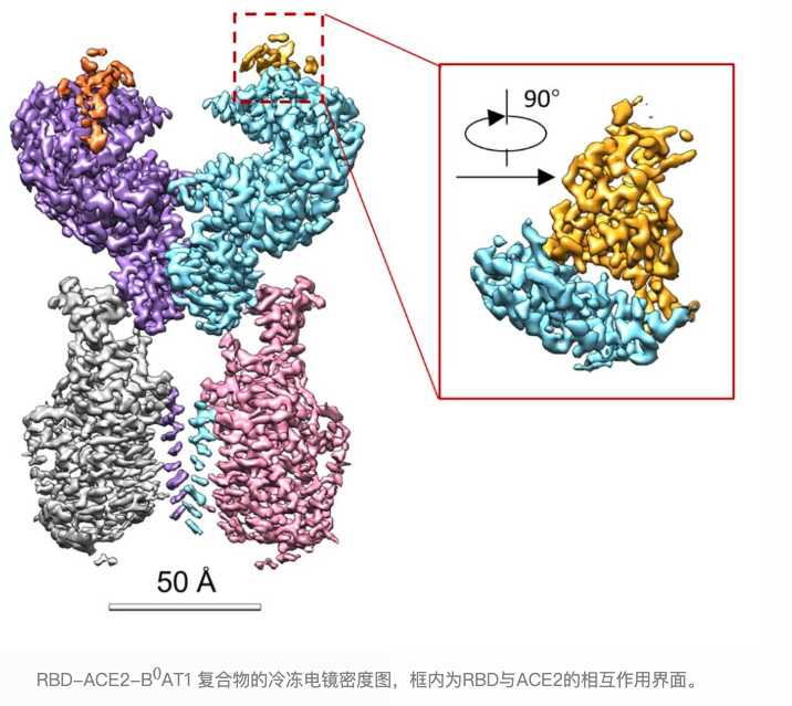 在此前已经成功解析出 ACE2 全长蛋白的高分辨三维空间结构的基础上,这篇论文成果解析出了 ACE2 全长蛋白与新冠病毒 S 蛋白受体结合结构域的复合物结构,整体分辨率 2.9 埃(埃,公制长度单位,1 埃等于 0.1 纳米,这个单位名称是为纪念瑞典物理学家 Anders Jonas ngstrm 而定的),其中 S 蛋白受体结合结构域部分的分辨率为 3.5 埃。